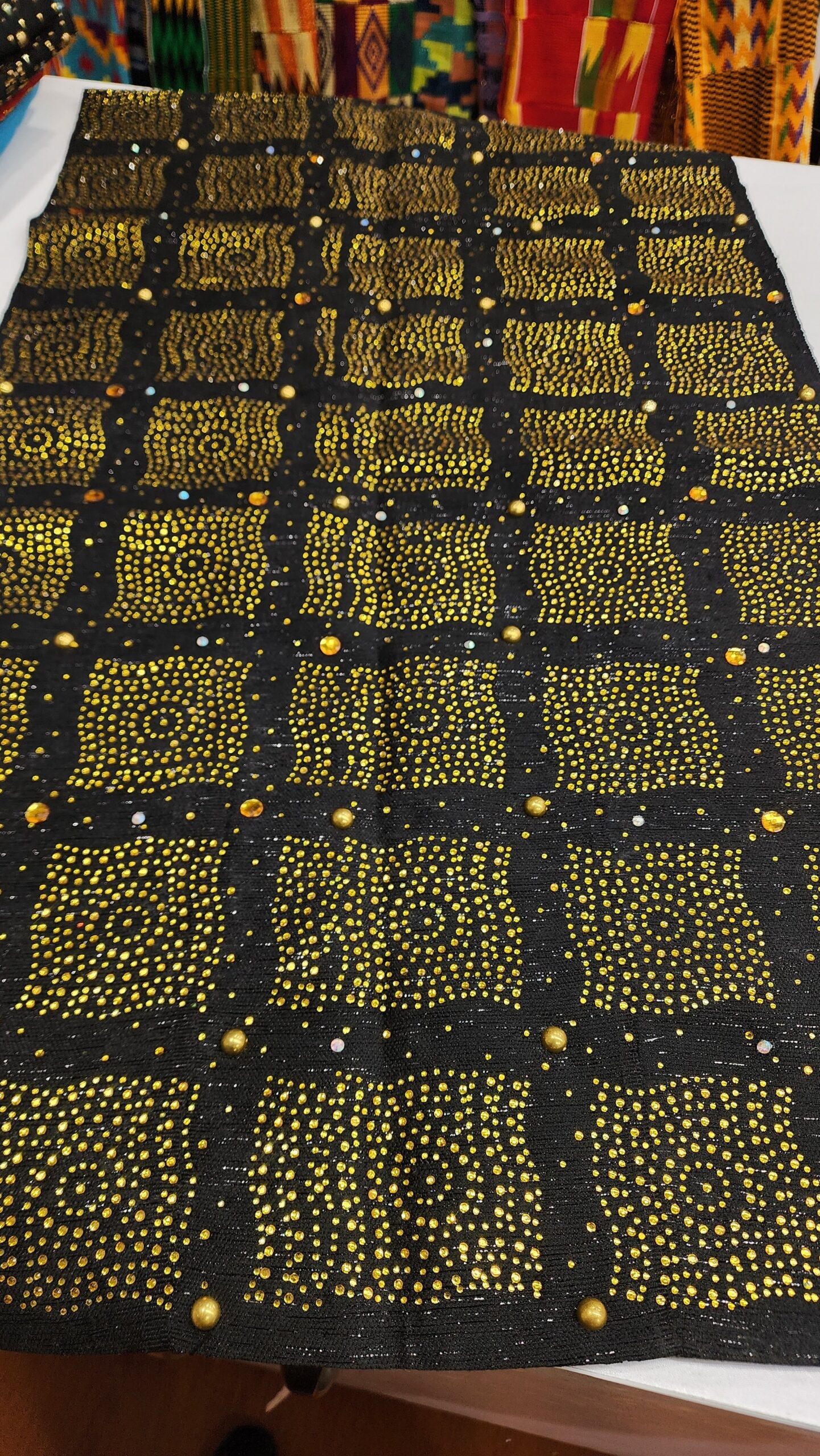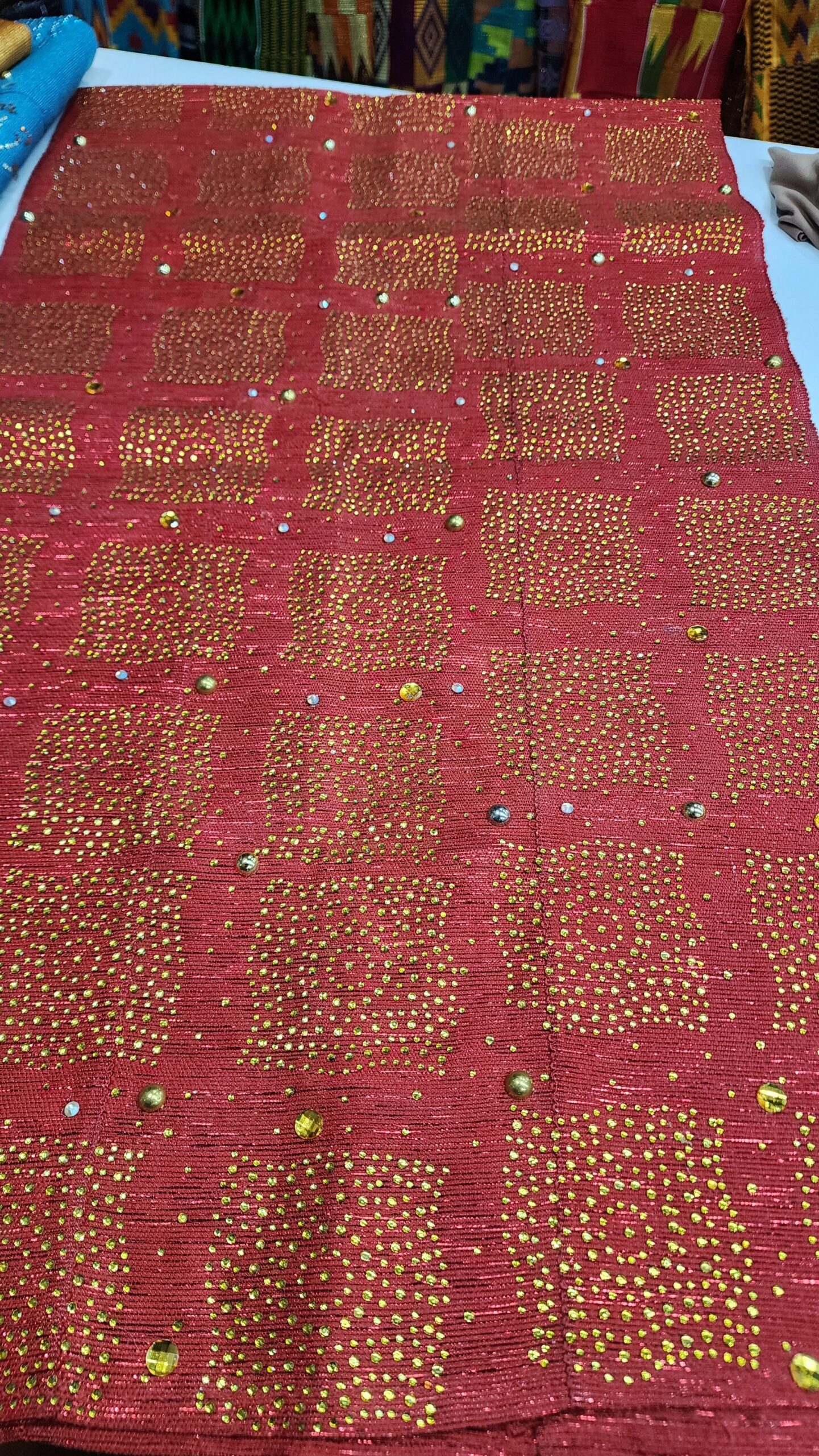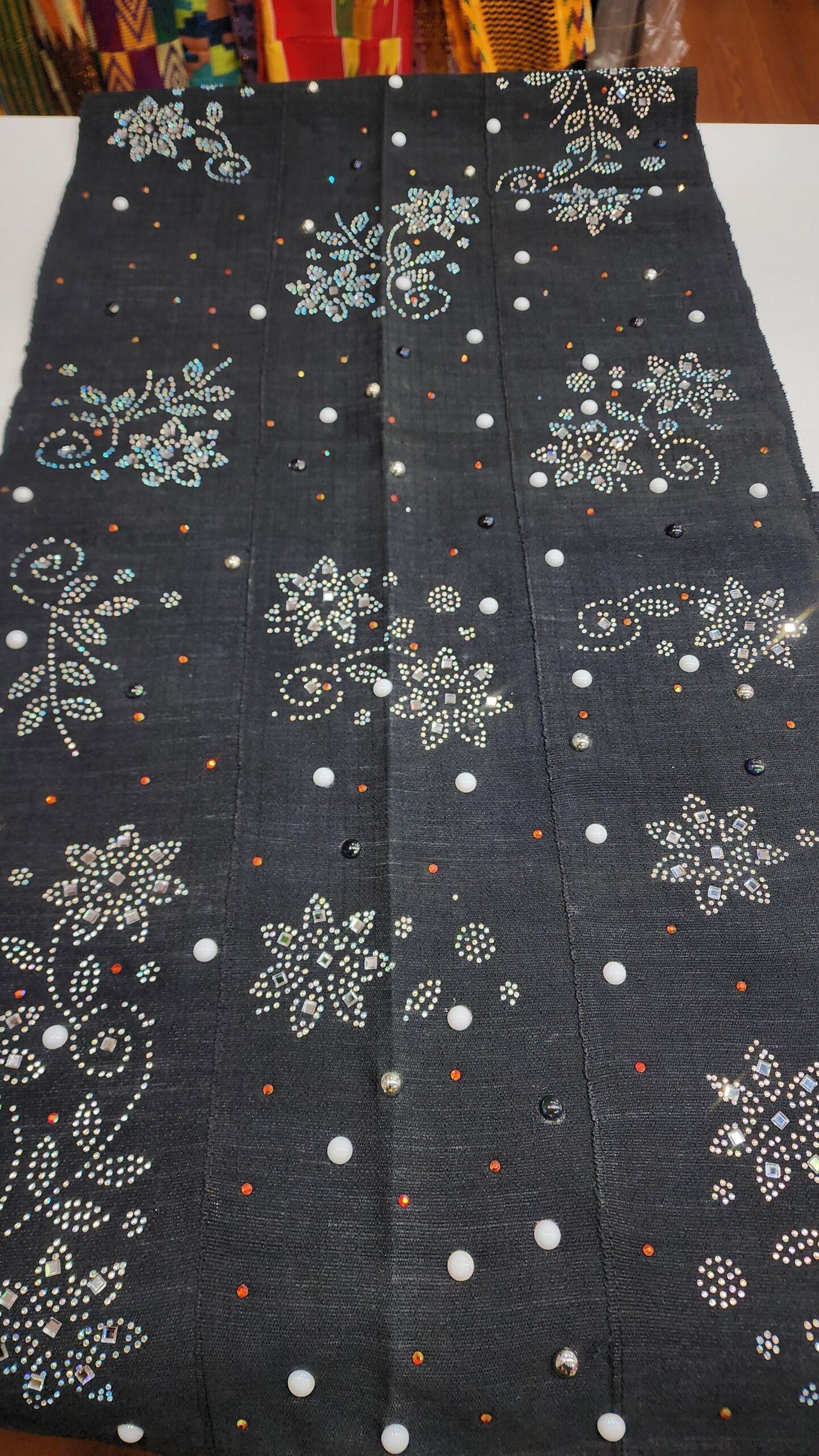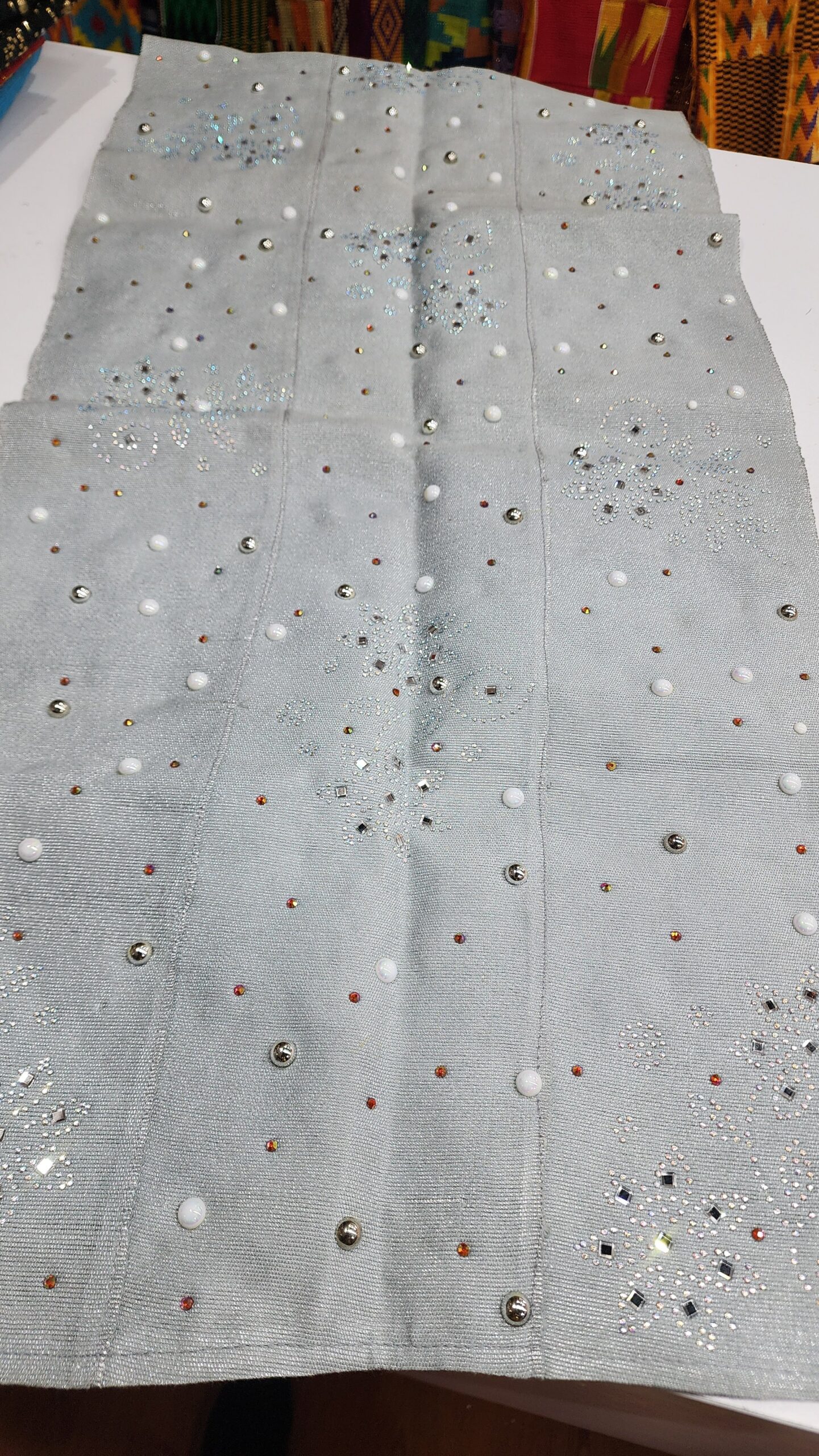 Others are softer asoeke with added rhinestone and pearl details.